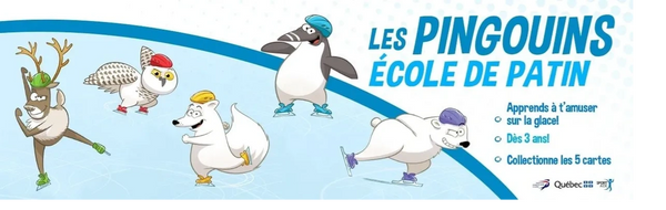 Pour guider le développement et surtout pour motiver le patineur tout au long de sa progression, des récompenses permettent de suivre l’évolution des jeunes qui s’amusent à collectionner les cartes des 5 niveaux du programme Les Pingouins – École de patin.